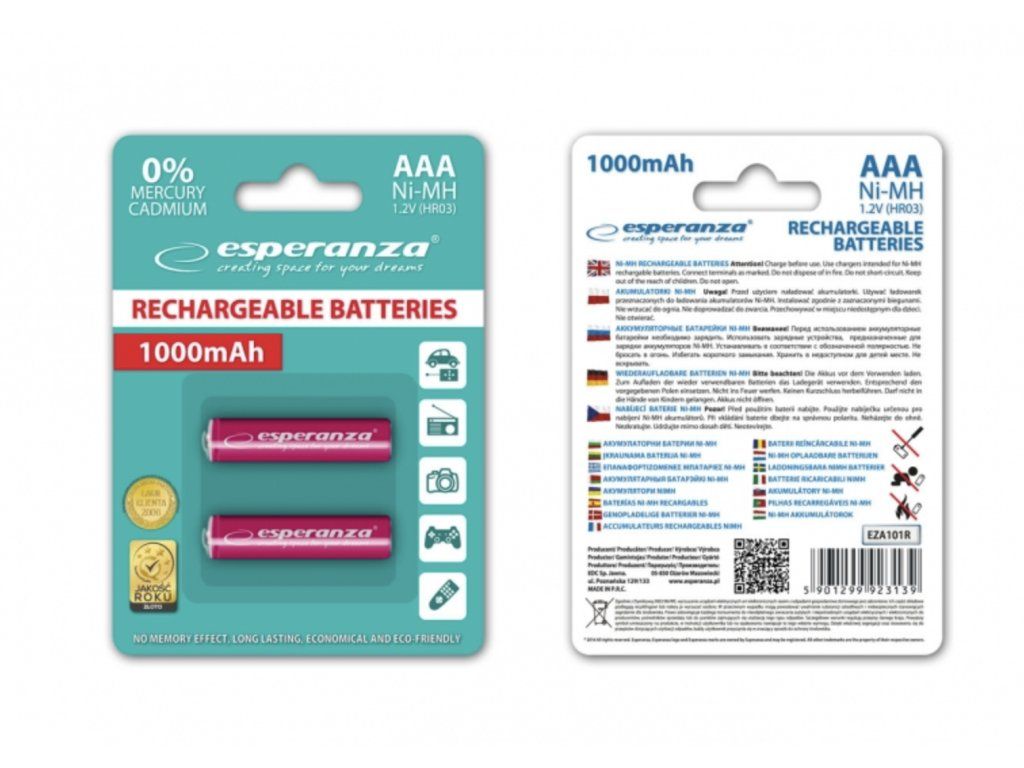 ESPERANZA dobíjecí baterie Ni-MH AAA 1000 mAh 2 ks – červené Ni-MH, 1000 mAh, balení 2 ks, červené