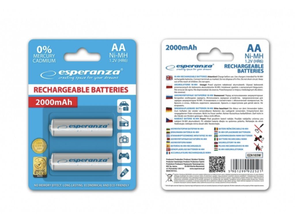 Hlavní výhody baterií Esperanza AA 2000 mAh: