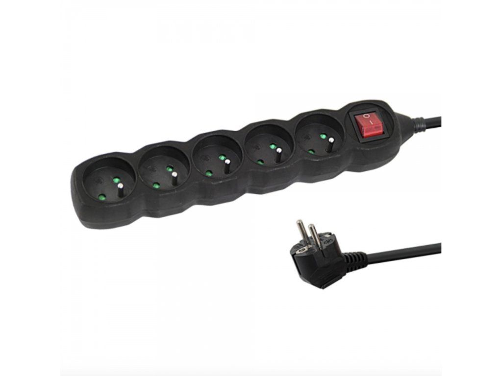 5 standardních zásuvek: Optimální počet pro napájení celé kancelářské nebo multimediální sestavy.