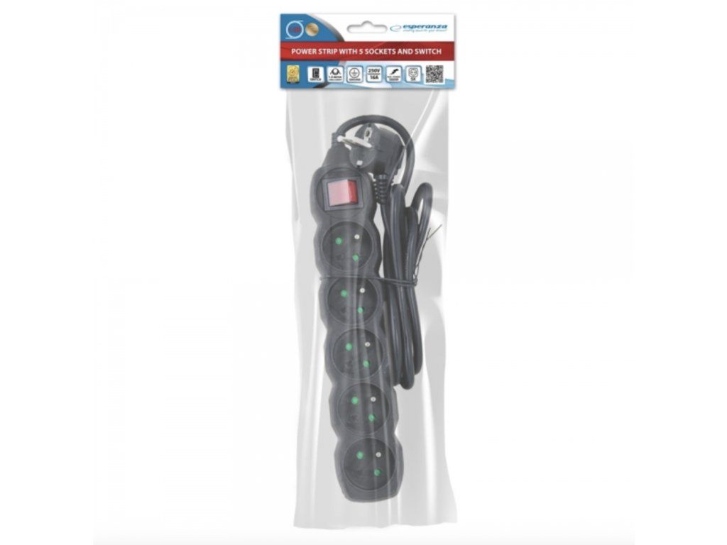 ESPERANZA napájecí lišta 5 zásuvek, vypínač, 1,5 m – černá prodlužovací přívod, 5x zásuvka, délka 1,5 m, s vypínačem