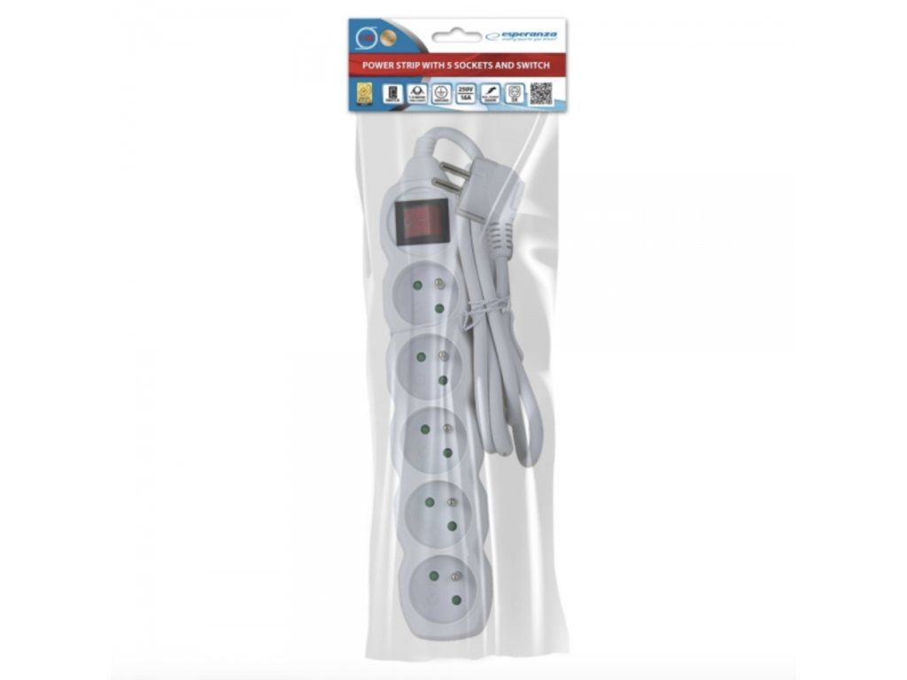 ESPERANZA napájecí lišta 5 zásuvek, vypínač, 1,5 m – bílá prodlužovací přívod, 5x zásuvka, délka 1,5 m, s vypínačem