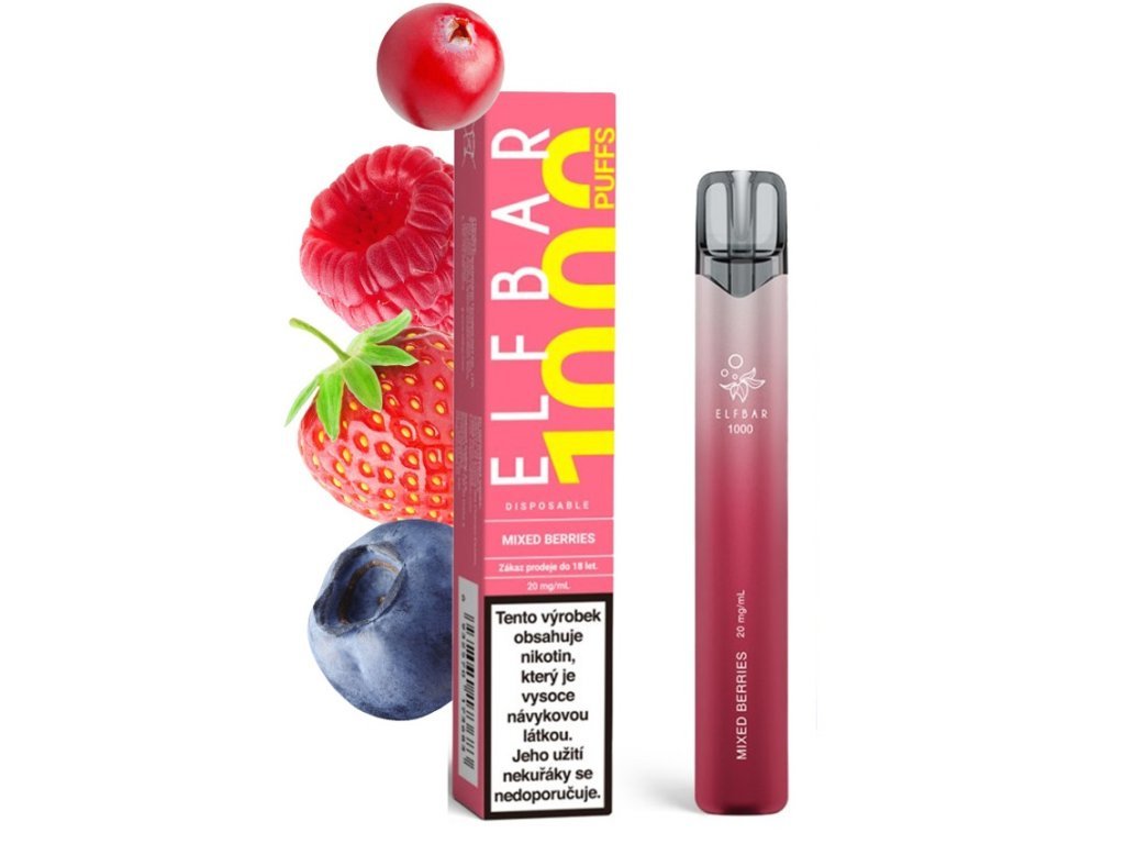 Elf Bar 1000 elektronicka cigareta 20mg Mixed Berries jednorázová elektronická cigareta s chutí lesní směsi jahod, borůvek a malin (20mg nikotinová sůl)