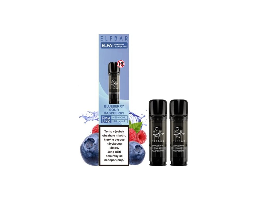 Elf Bar ELFA Pods cartridge 2Pack Blueberry Sour Raspberry 20mg předplněné náhradní cartridge pro systém ELFA (2 ks v balení, 20mg nikotinová sůl)