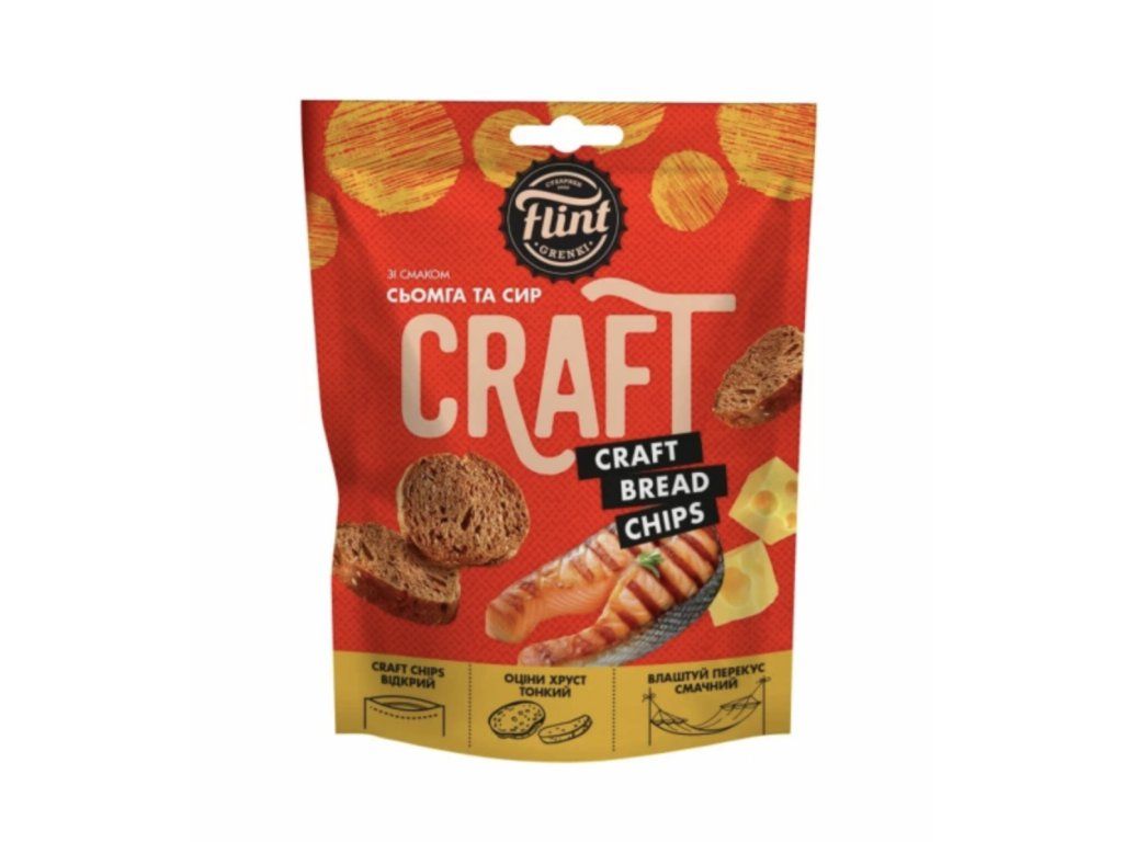 Prémiové vlnité krutony Flint z řady Craft s originální a jemně slanou příchutí uzeného lososa doplněnou o krémové tóny sýra. Tyto žitno-pšeničné suchary (grenky) vynikají svým unikátním tvarem, který zajišťuje maximální křupavost a perfektní zachycení aromatického koření. Ideální gourmet snack k pivu, bílému vínu nebo jako netradiční pohoštění pro milovníky mořských plodů.