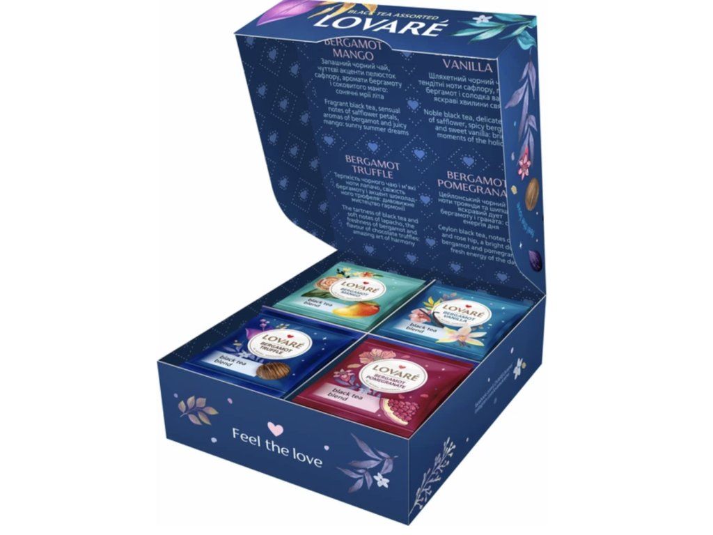 Lovare Bergamot je degustační set navržený pro skutečné znalce. Bergamotový olej je v těchto směsích kombinován s kvalitními lístky černého čaje a dalšími přírodními ingrediencemi, které vytvářejí komplexní a vrstvený chuťový zážitek. Každý sáček je uzavřen v individuální obálce, aby jemné citrusové aroma nevyprchalo a zůstalo chráněno před okolními vlivy.
