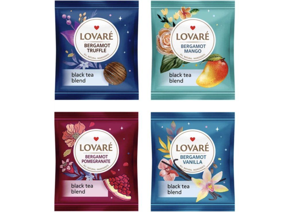 LOVARE Sada černých čajů Bergamot (4 druhy po 8 sáčcích) kolekce černých čajů Earl Grey, 4 příchutě, 32 sáčků v obálce