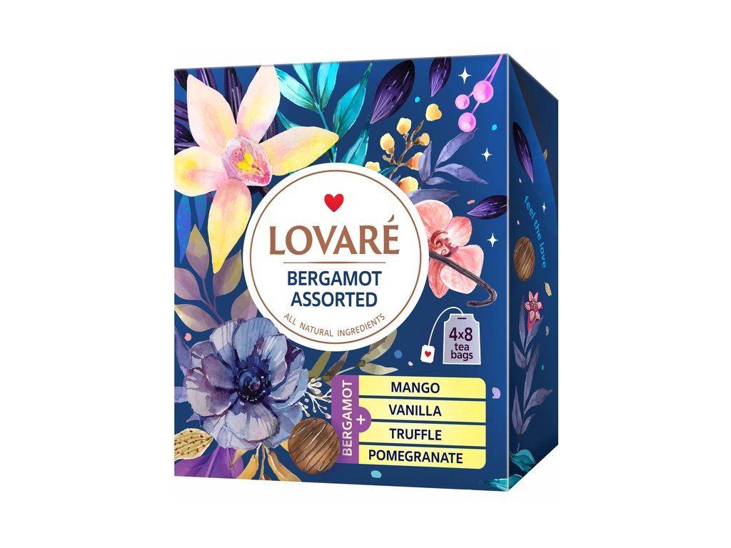 Exkluzivní kolekce čtyř unikátních směsí černého čaje s aromatickým bergamotem v dárkovém balení. Sada Lovare Bergamot Assorted obsahuje celkem 32 samostatně balených sáčků, které nabízejí různé pohledy na klasický Earl Grey – od jemné vanilky až po divoké lanýže. Ideální volba pro ty, kteří milují citrusovou svěžest bergamotu a chtějí objevovat jeho nekonečné kombinace.
