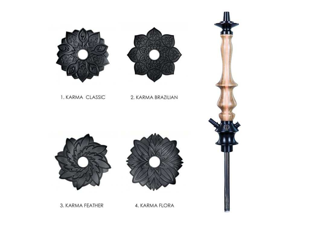 Ikonický široký talířek: Charakteristický hliníkový talířek s propracovaným vzorem je poznávacím znamením značky Karma. Je dostatečně velký pro bezpečné odkládání uhlíků a chrání váš stůl.